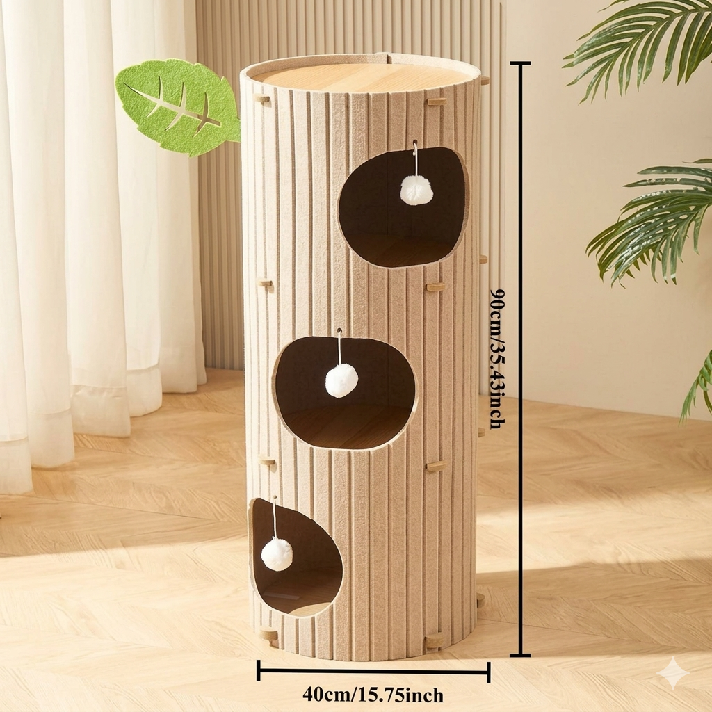 Caractéristiques : Bac à griffes douillet et confortable : L’étage supérieur est doté d’un couchage moelleux, idéal pour l’hiver, parfait pour se prélasser ou se lover après une longue séance de jeu. Nid pour chat en forme de trou d’arbre : Conçu pour éveiller la curiosité de votre chat, ce nid fermé en forme de trou d’arbre offre une cachette sécurisée et sert également de griffoir pour protéger vos meubles. Jeu interactif : Les pompons suspendus ajoutent une touche d’excitation supplémentaire, encourageant l’activité physique et la stimulation mentale. Plusieurs compartiments : Offre trois niveaux d’espaces de repos ou de jeu confortables, permettant à votre chat d’explorer et de se détendre. Montage facile : Montage sans outil, rapide et facile.