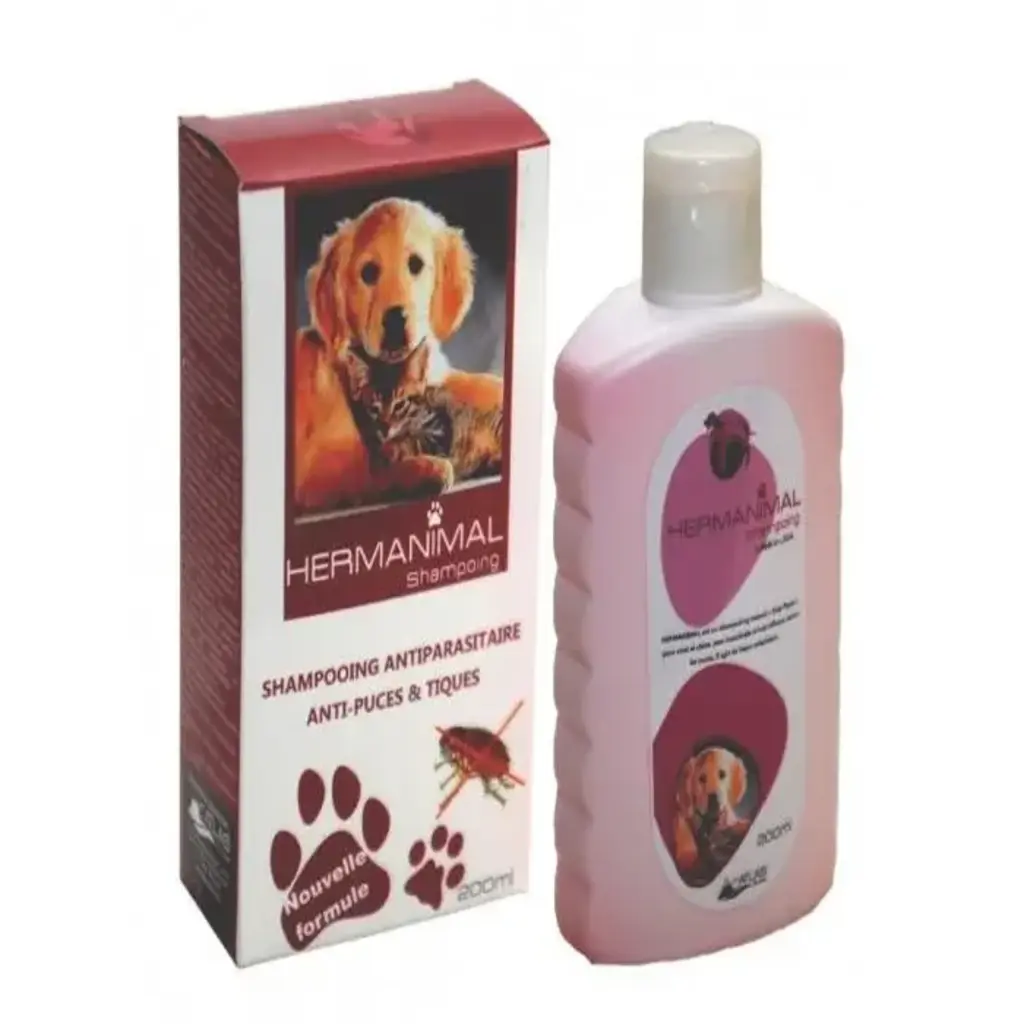 Hermanimal Shampoing spécialement conçu pour chiens et chats, enrichi en huile d’argan pour des poils doux et brillants, antiparasitaire, antipuces