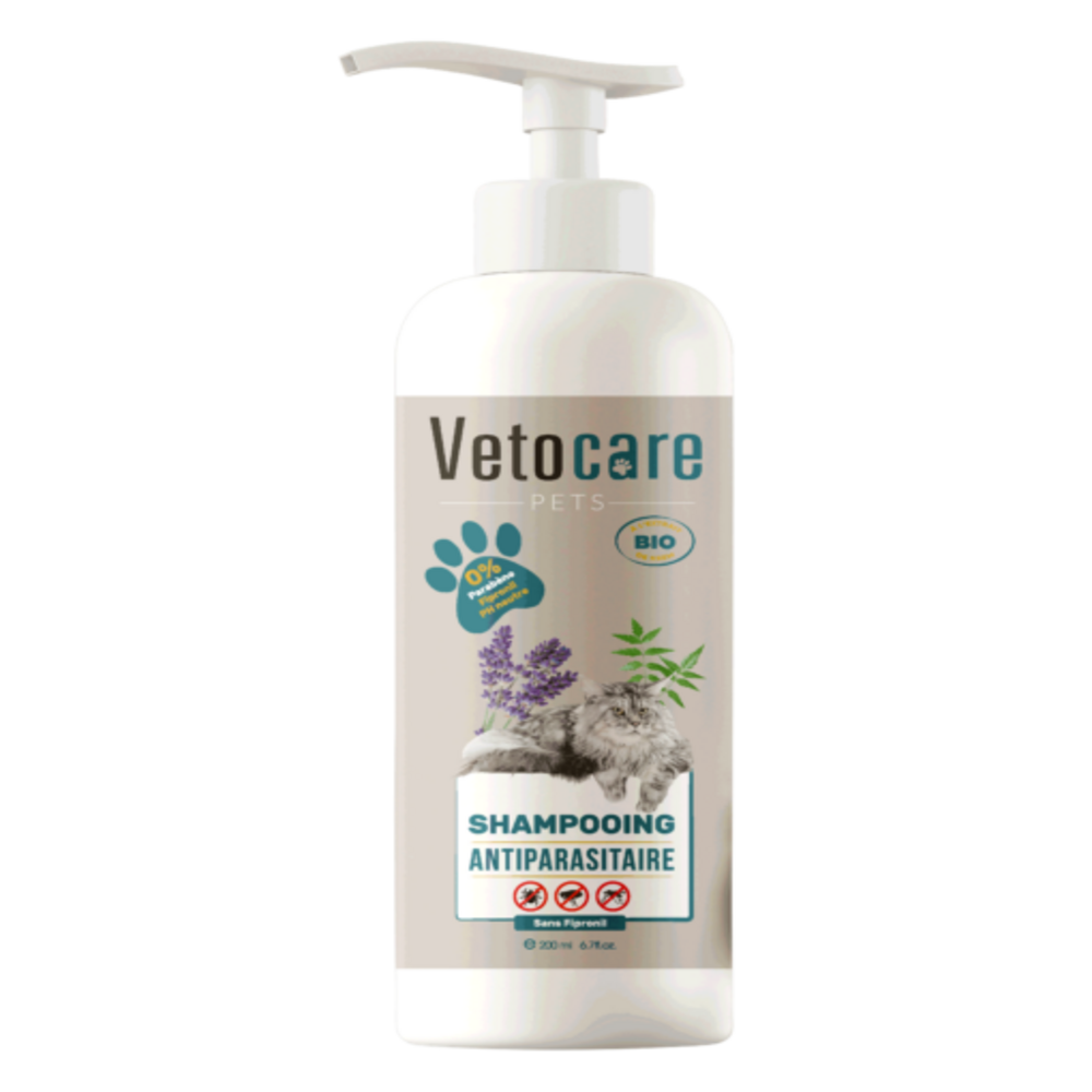 Vetocare Shampoing Antiparasitaire pour Chat Le shampoing antiparasitaire vetocare est compose d’actifs d’origine végétal et bio